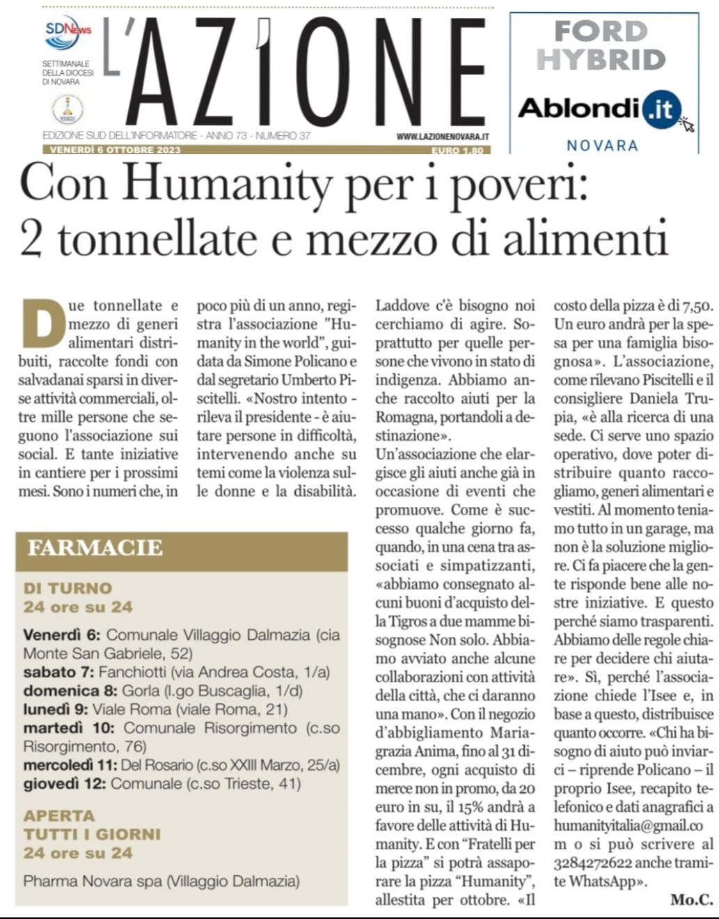 HUMANITY in the World lavora ogni giorno per contrastare la povertà in Italia e nel mondo, tutelare i diritti umani, supportare e proteggere l’ambiente e il mondo animale.